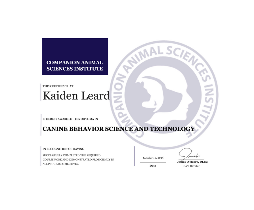"Kaidens love and patience with animals shines through his work. He was so loving and kind with my pup, she absolutely adores him. His training has been top notch and my dog has been so attentive to my commands. I highly recommend his services to anyone looking for a loving, patient, passionate and educated trainer!"